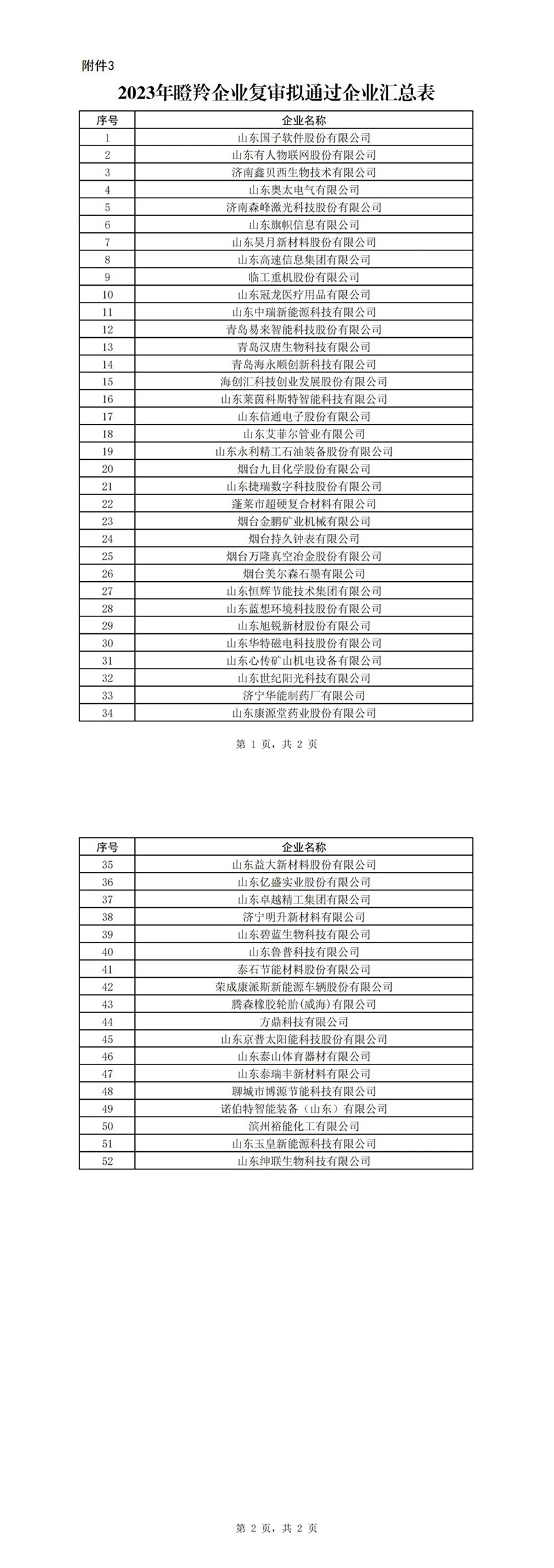 根據《山東省瞪羚、獨角獸企業認定管理辦法》(魯工信發〔2020〕8號)、《關于開展2023年度山東省瞪羚、獨角獸企業培育認定工作的通知》等文件精神,省工業和信息化廳組織開展了2023年度山東省瞪羚、獨角獸企業培育認定工作。經企業自愿申報、各市中小企業主管部門推薦、專家評審、第三方信用評級、獨角獸企業盡職調查、聯合終審等程序,擬確定臨工重機股份有限公司等3家企業為2023年度山東省獨角獸企業(見附件1),山東微感光電子有限公司等654家企業為2023年度山東省瞪羚企業(見附件2),山東國子軟件股份有限公司等52家企業為2023年度通過復審的山東省瞪羚企業(見附件3),現予公示。